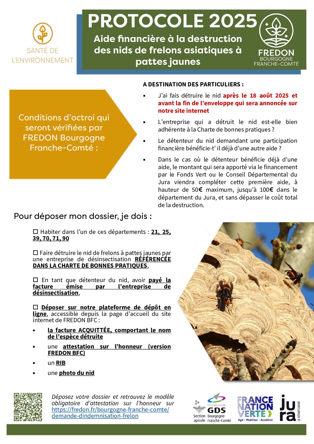 Ci-joint le protocole pour demander l’aide financière à la destruction des nids.
