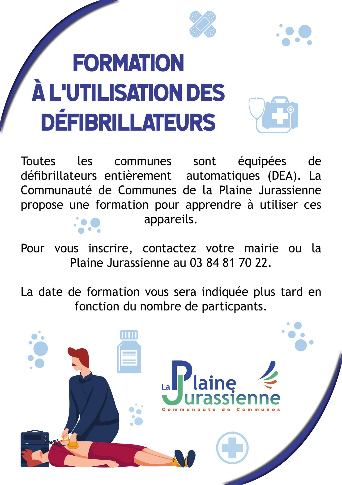 La Plaine Jurassienne vous propose des formations gratuites pour apprendre à utiliser les défibrillateurs entièrement automatiques (DEA), présents dans toutes les communes du territoire.